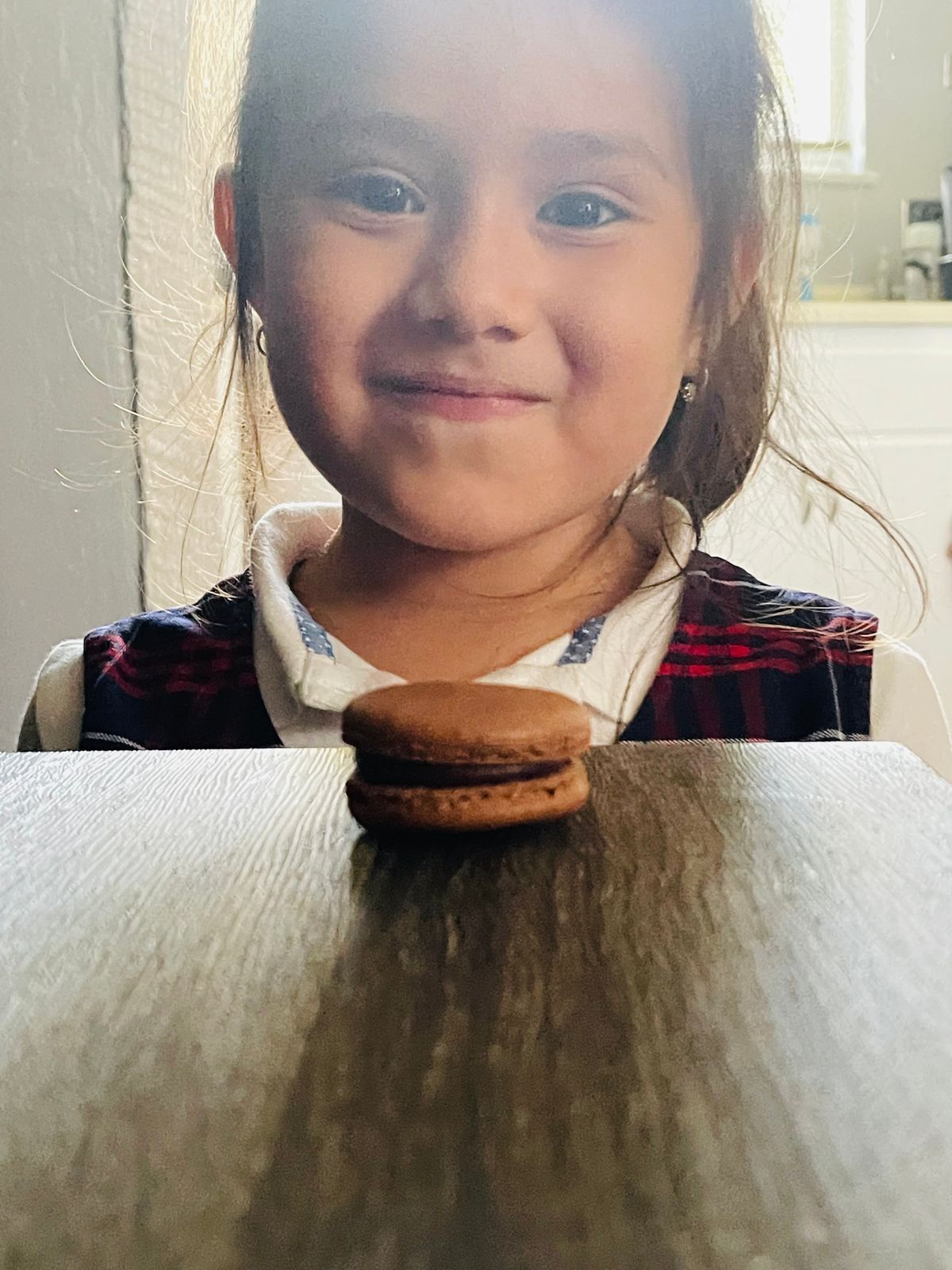 Macaron Queen's signature recipe where the color of this macaron comes from real cocoa powder. No food coloring. Filled with our smooth dark chocolate ganache sweet well rounded flavor. Gluten Free