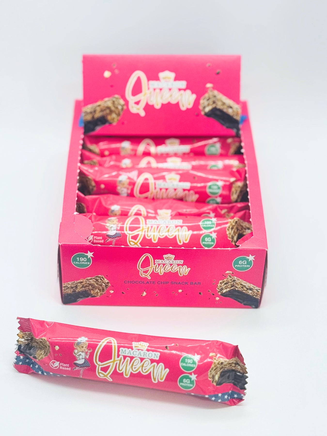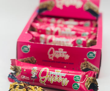 We put our skills to work and created a delicious plant based Chocolate chip snack bar packed with 6 grams of protein! Macaron Queen always thinks of the "Better for you" way to indulge. Made with Oats, Almonds and Chocolate. Only 190 calories.